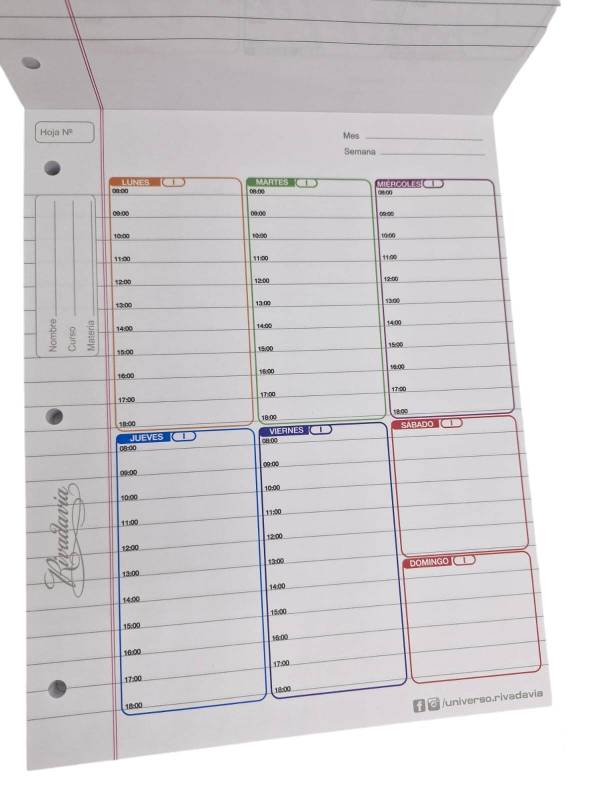 Planificador Semanal Escolar Rivadavia X 50 Hjs