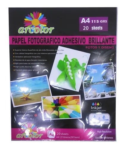 Papel Fotografico A4 X 20 Unid Autoadhesivo Arcolor 135 Grs