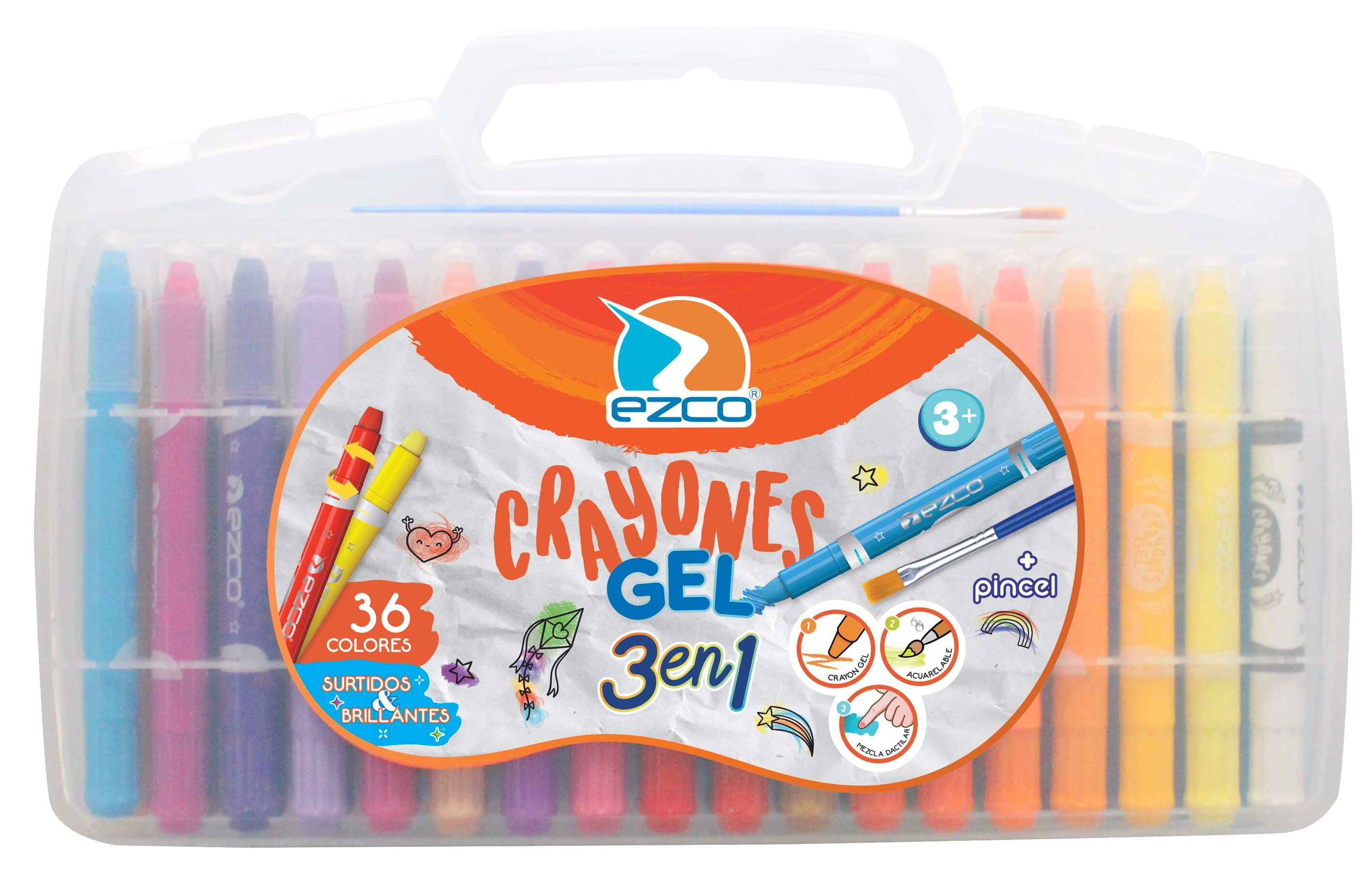Crayones Ezco Gel + Pincel X 36 Colores En Valija