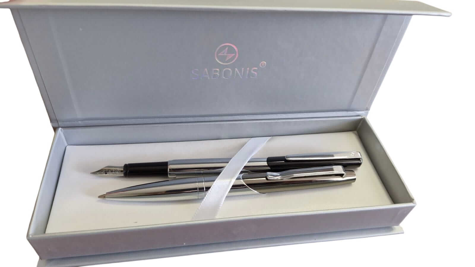 Lapicera Pluma Sabonis + Roller 612-11 Profesional Plata En Estuche