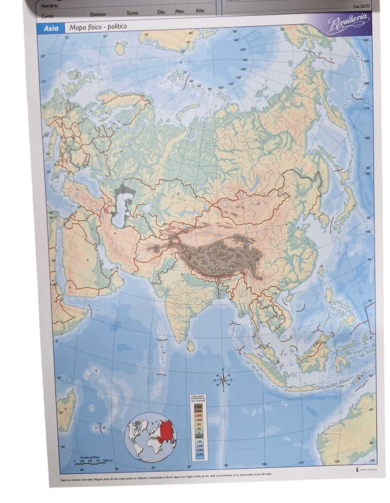 Mapa Rivadavia N°5 Físico Político Asia 20 Hjs