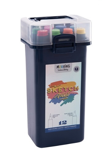 Marcadores con tinta a base de alcohol, profesionales para coloreo. Punta biselada para trazos prolijos e integración del color. Punta pincel para detalles suaves. Se recomienda usar en hojas de gramaje superior a 90 grs. Estuche desplegable.