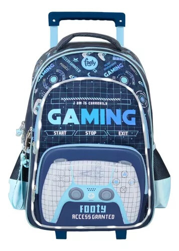 Mochila Footy C/Carro F3261 Level Up Azul 18' C/Led