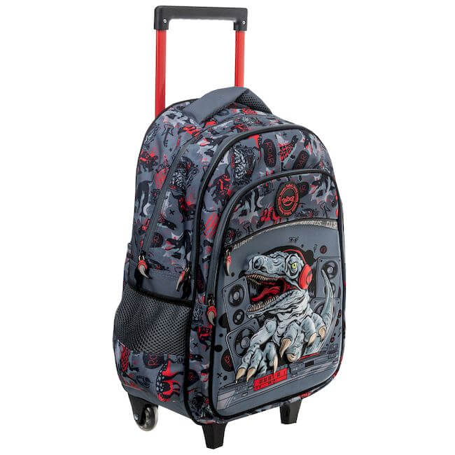 Mochila carro Talbot School Gang Dino 45cm, con 4 cierres 2 bolsillos frontales, 2 bolsillos para botella y tiras acolchadas. Contiene 3 ruedas de PVC y carro regulable 2 alturas - Medidas: 45 x 35 x 15 cm (Carro cerrado). Pulgadas: 18" - Peso: 1320 gr. - Capacidad: 30 litros