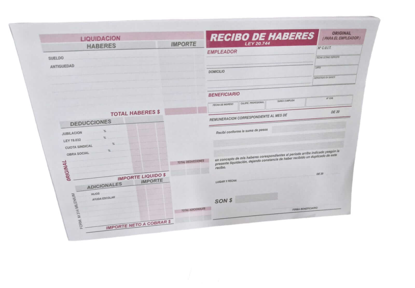 Talonario Recibo De Haberes 1/2 M314 C/Salario